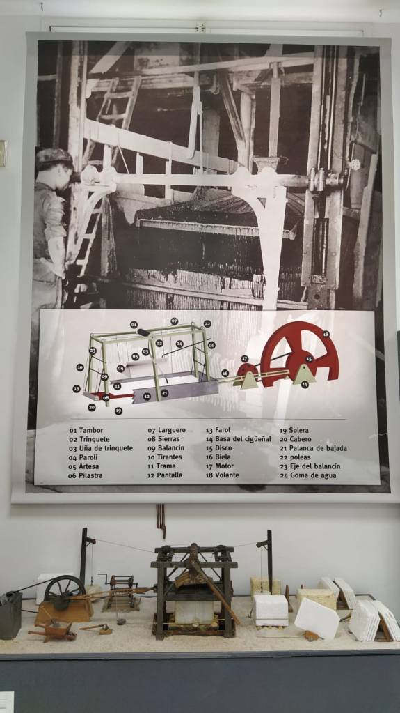 En Fines, se instala en 1837 el primer telar de mármol, por una compañía de catalanes, en la ribera del Río Almanzora. El telar cuenta con 60 flejes que cortan el mármol presionando contra éste arena traída de la playa. Aprovecha la energía hidráulica, igual que otra segunda máquina que se mueve al mismo tiempo que los flejes con las que se da a las tablas el primer pulimento.