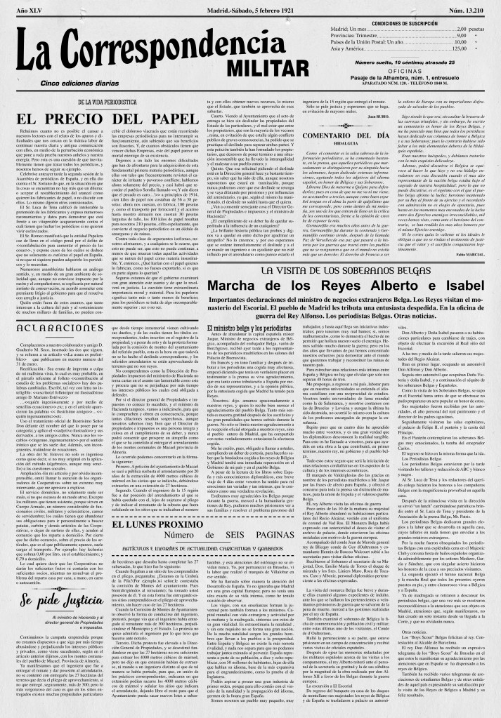 Cada año se reparte un periódico diferente. Simulan a un periódico de la época en el que el anverso es la reproducción de uno ejemplares del periodo 1919-1947 que recogen entre sus artículos uno dedicado al conflicto, antes citado.
