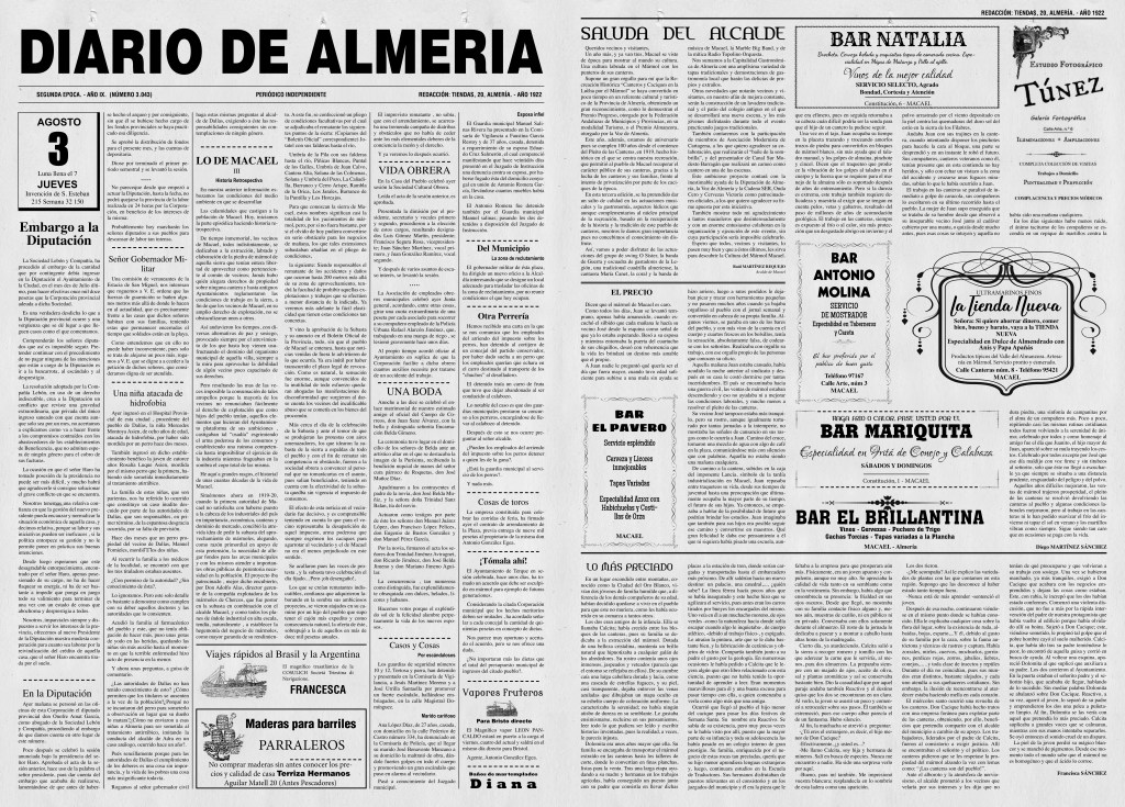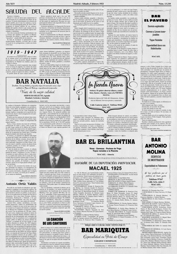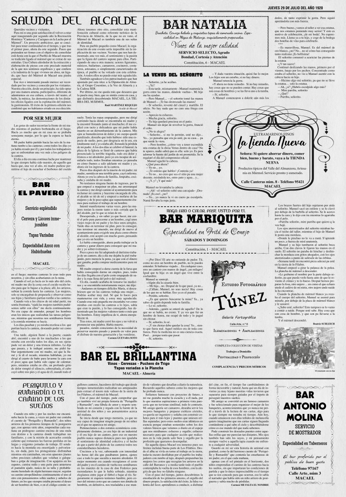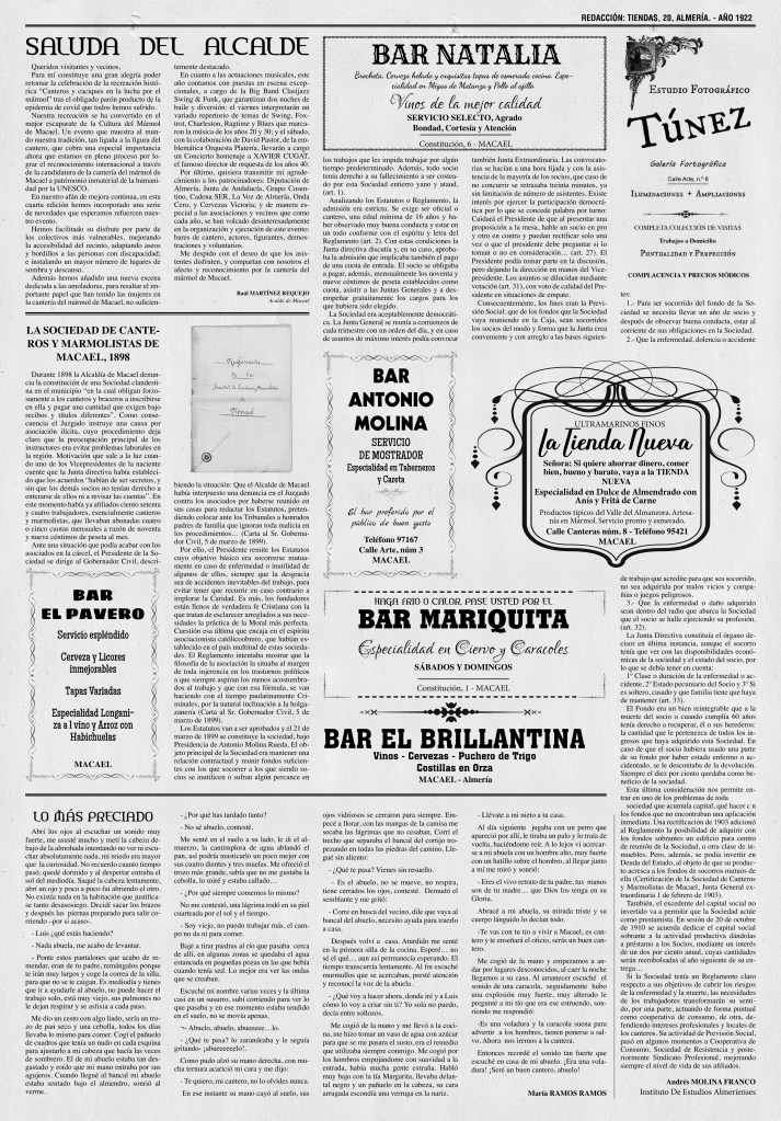 No te pierdas el de este año, con un interesantísimo artículo acerca de la estación y vía de tren que se proyectó para Macael, y la reproducción de un anuncio de un taller de mármol de Macael de 1887.