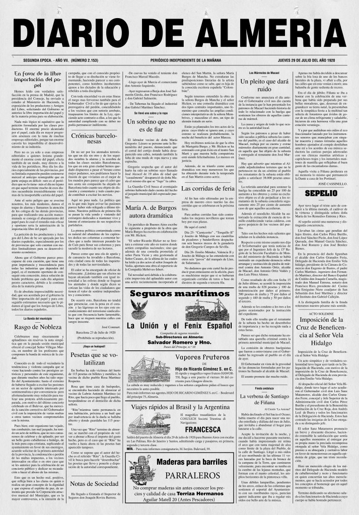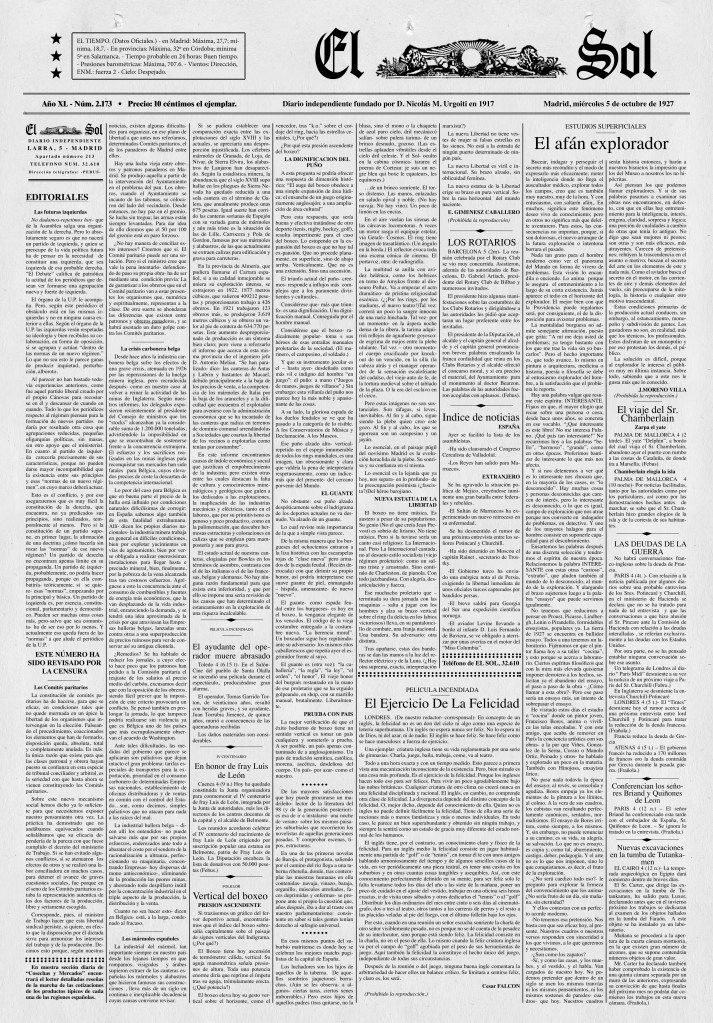 Uno de ellos el el periódico de la época que se reparte el sábado por la tarde. Al grito de: